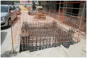 edifício. A foto indica a fixação da fundação.