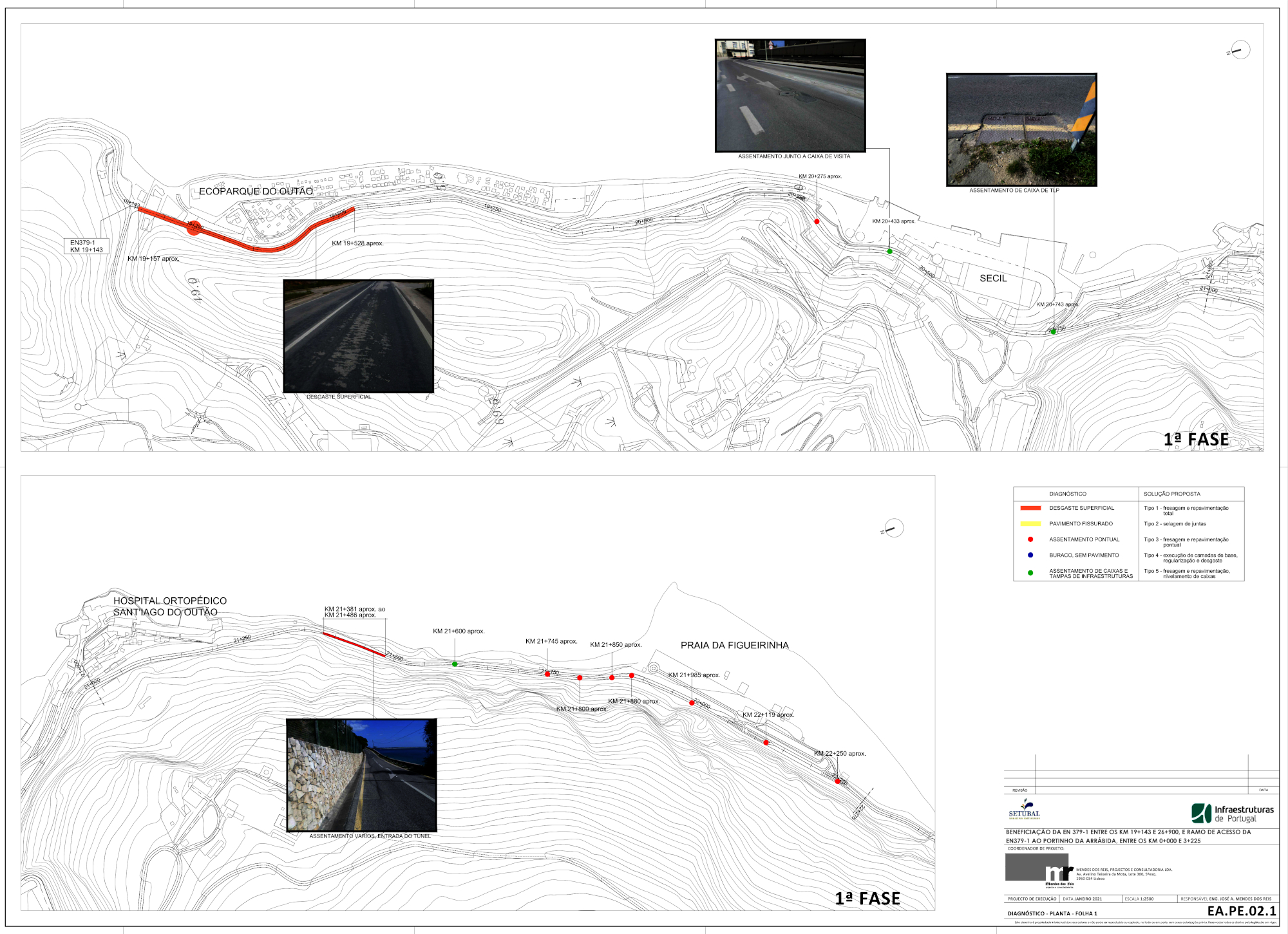 A 1ª Fase contemplou todos os trabalhos a desenvolver na EN 379-1, entre o PK 19+143, junto ao Ecoparque, e o PK 22+250 aproximadamente, junto à Praia da Figueirinha.