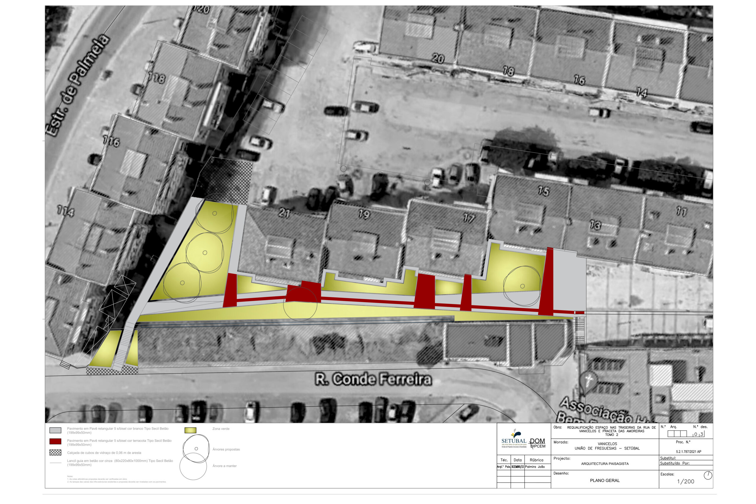 A Câmara Municipal de Setúbal vai proceder à execução da empreitada de CONSTRUÇÃO DO ESPAÇO NAS TRASEIRAS DA RUA DE VANICELOS E PRACETA DAS AMOREIRAS que tem por objeto a requalificação de espaços exteriores em duas zonas: no Tomo 1, Espaços exteriores da parte tardoz dos edifícios da Rua de Vanicelos e Praceta das Amoreiras; no Tomo 2, Espaços exteriores da parte tardoz dos edifícios da Rua de Vanicelos e zona de garagens da Rua Conde Ferreira.