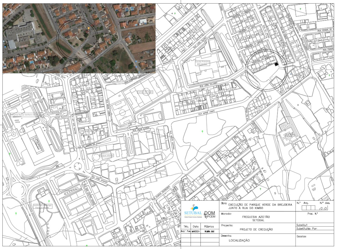 A presente intervenção tem como objetivo a criação de um parque verde na Brejoeira junto à Rua do Kimbo na freguesia de Azeitão.