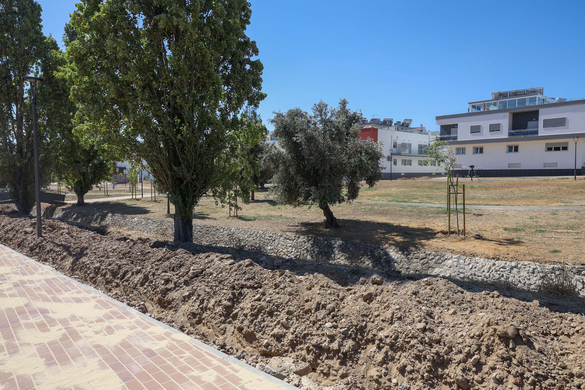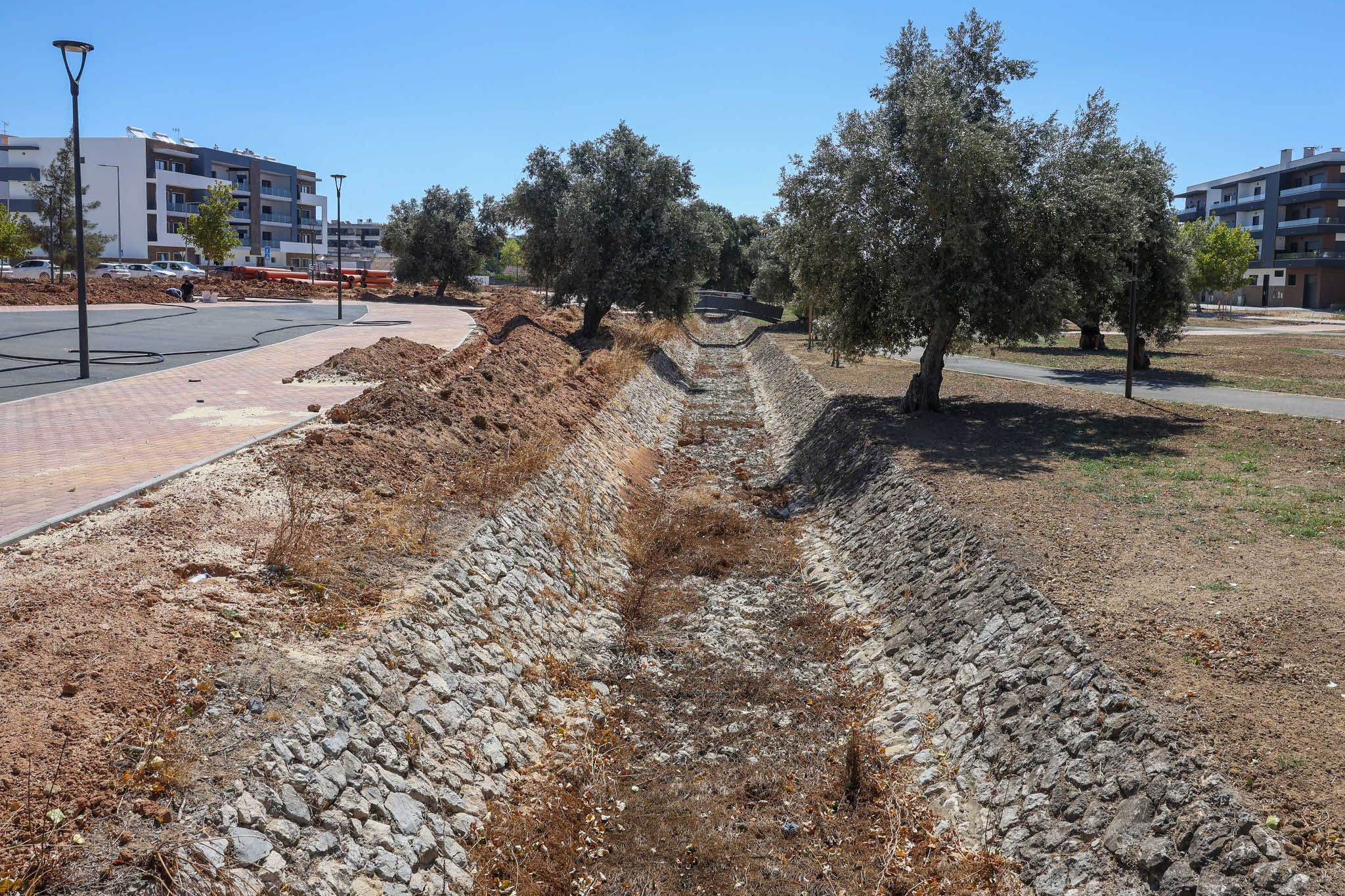 Todo este espaço é unificado pela linha de água, que, em virtude das necessidades de intervenção no vale, é regularizada. Esta situação criou uma mais-valia no espaço, ao adicionar uma zona de usufruto do parque, dando à linha de água uma possibilidade de contenção de fluxos, sem ser uma fronteira indesejável. Uma rede de caminhos enriquece o parque, como que em oposição à ribeira, e estabelece um conjunto de subsidiários, que dos núcleos urbanos trazem os fluxos pedonais para o parque. Esta obra vive em grande proximidade com a linha de água e drenagem das águas pluviais da urbanização, pelo que a materialização do mesmo implica um certo cuidado.