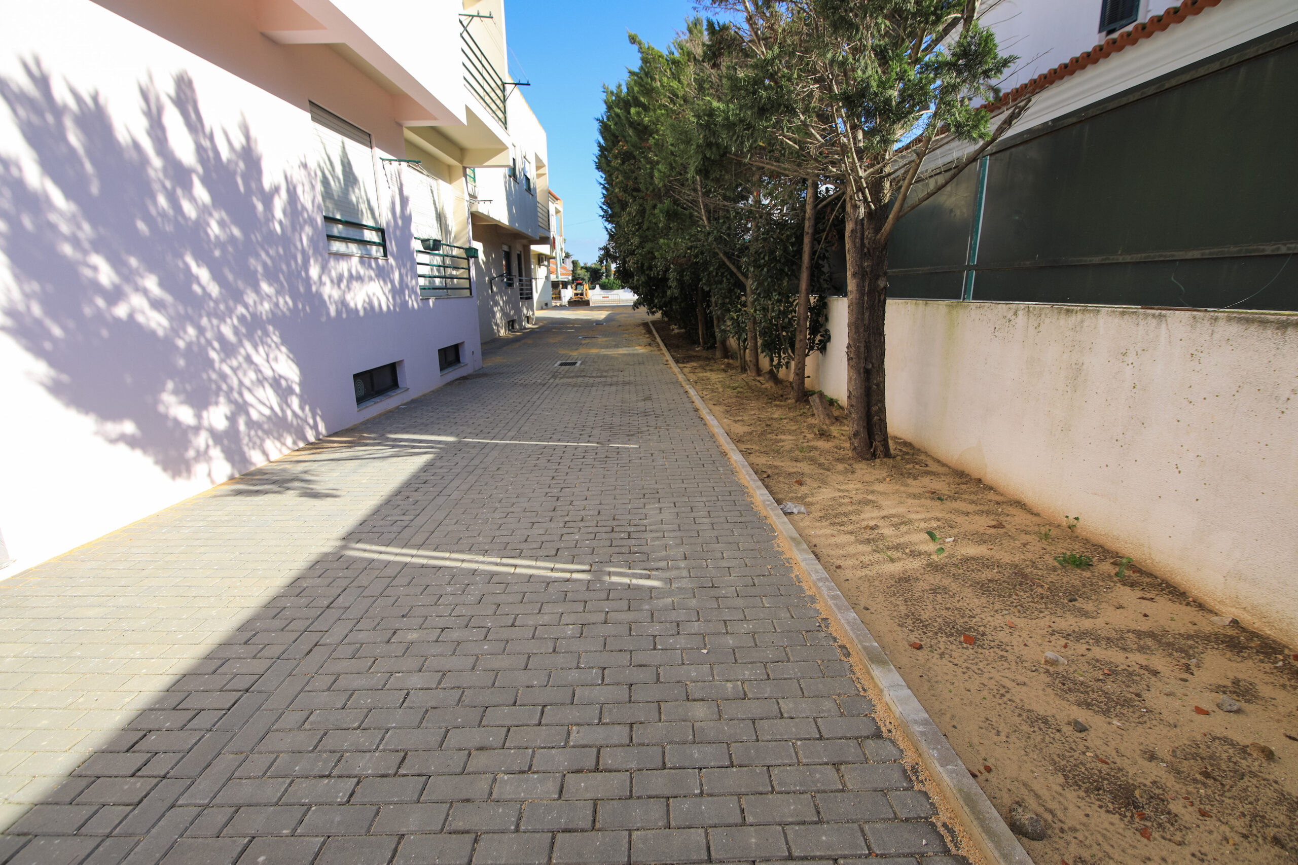 A intervenção iniciou com a implementação dos troços dos sistemas de drenagem de águas pluviais. Só posteriormente, se deu início à colocação dos lancis, para delimitação do espaço destinado à manutenção do arvoredo existente.