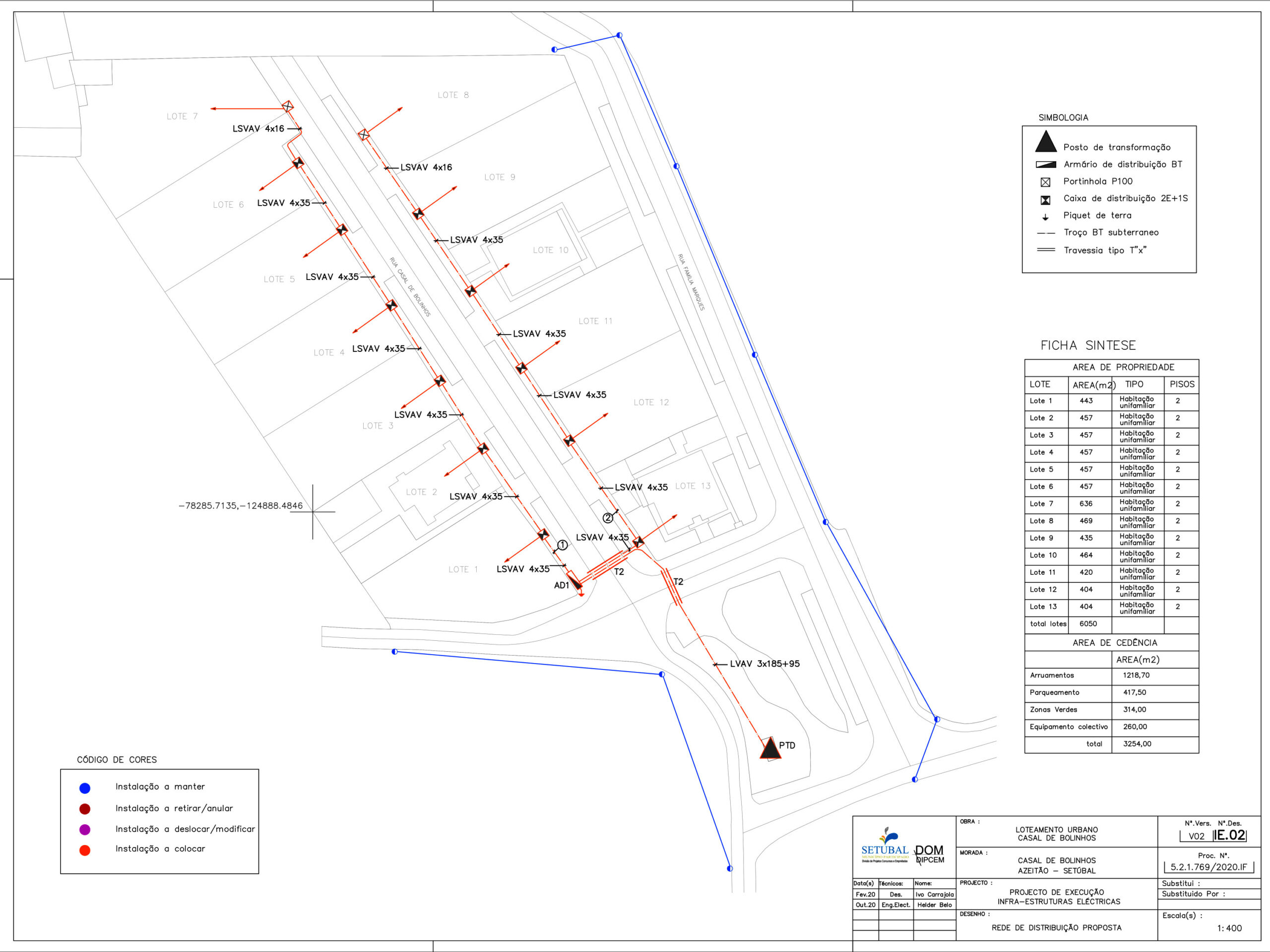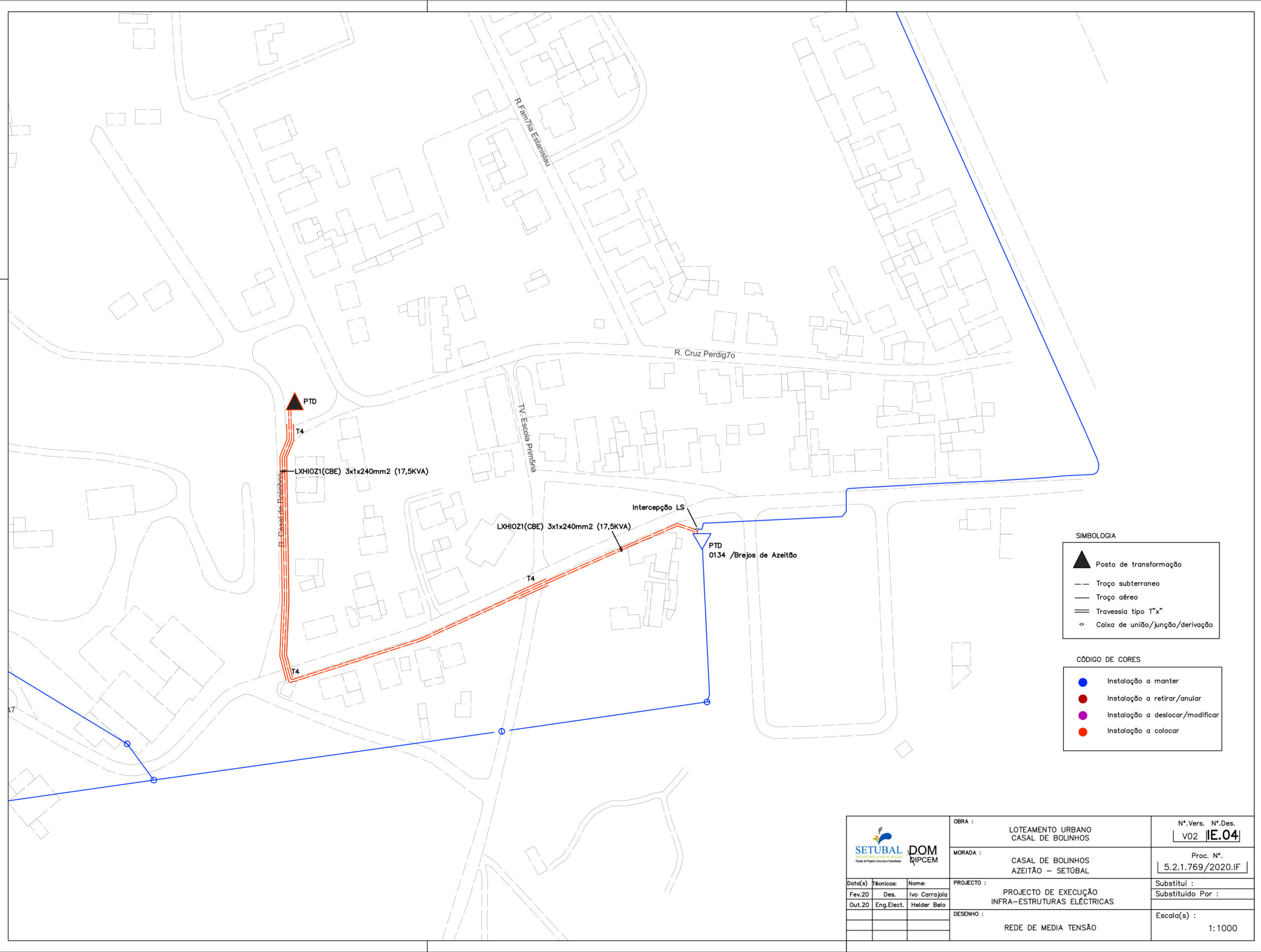 Requalificação das Redes de Distribuição em média tensão, baixa tensão e de iluminação pública do loteamento constituído por 13 lotes para a construção de moradias unifamiliares com dois pisos e por uma área de cedência para equipamento e espaços verdes, sito em Casal de Bolinhos, em Azeitão.