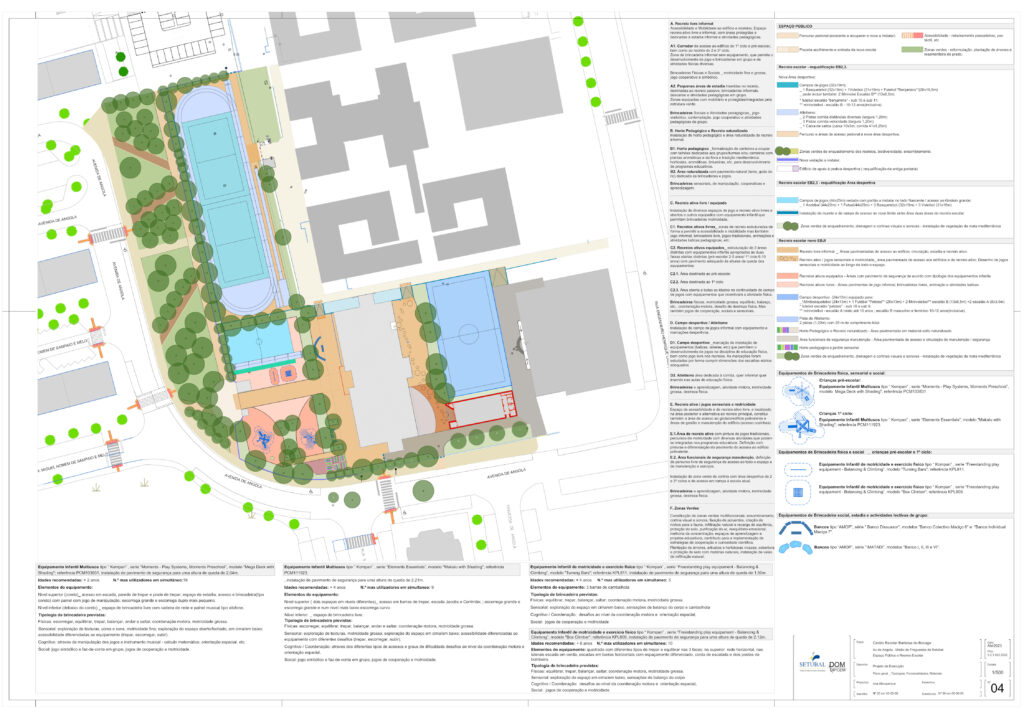 • Criação de uma nova entrada viária a sul do recinto, a partir da Av. de Angola, para cargas e descargas da nova EB do 1º Ciclo;