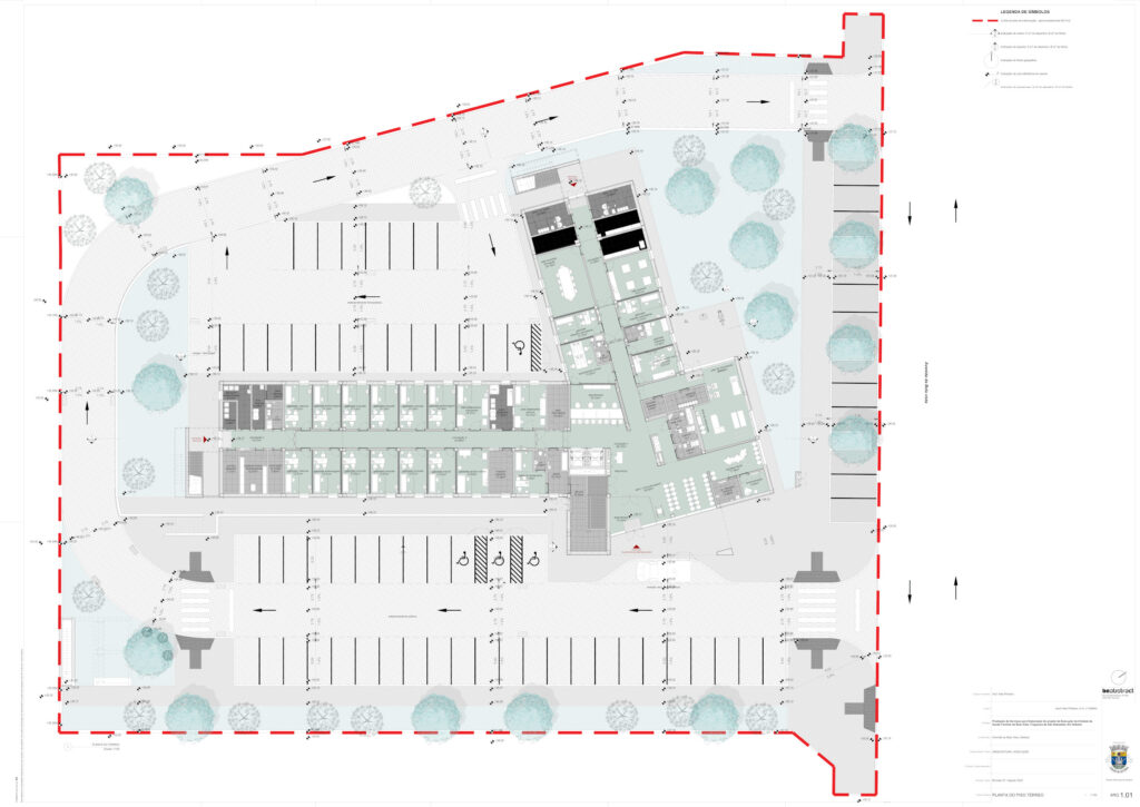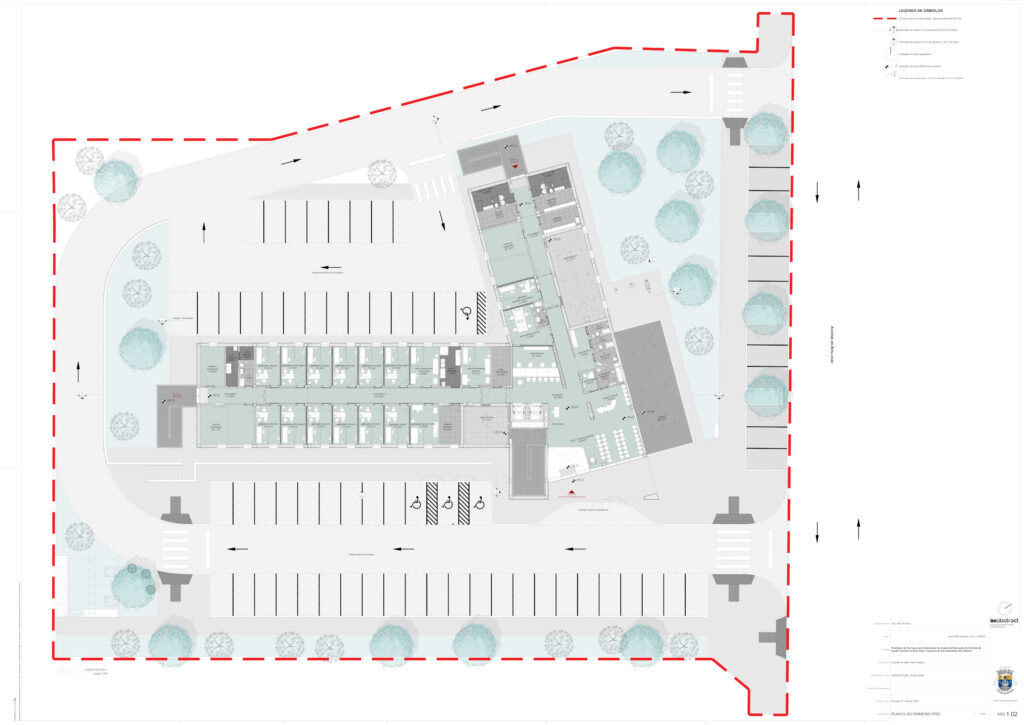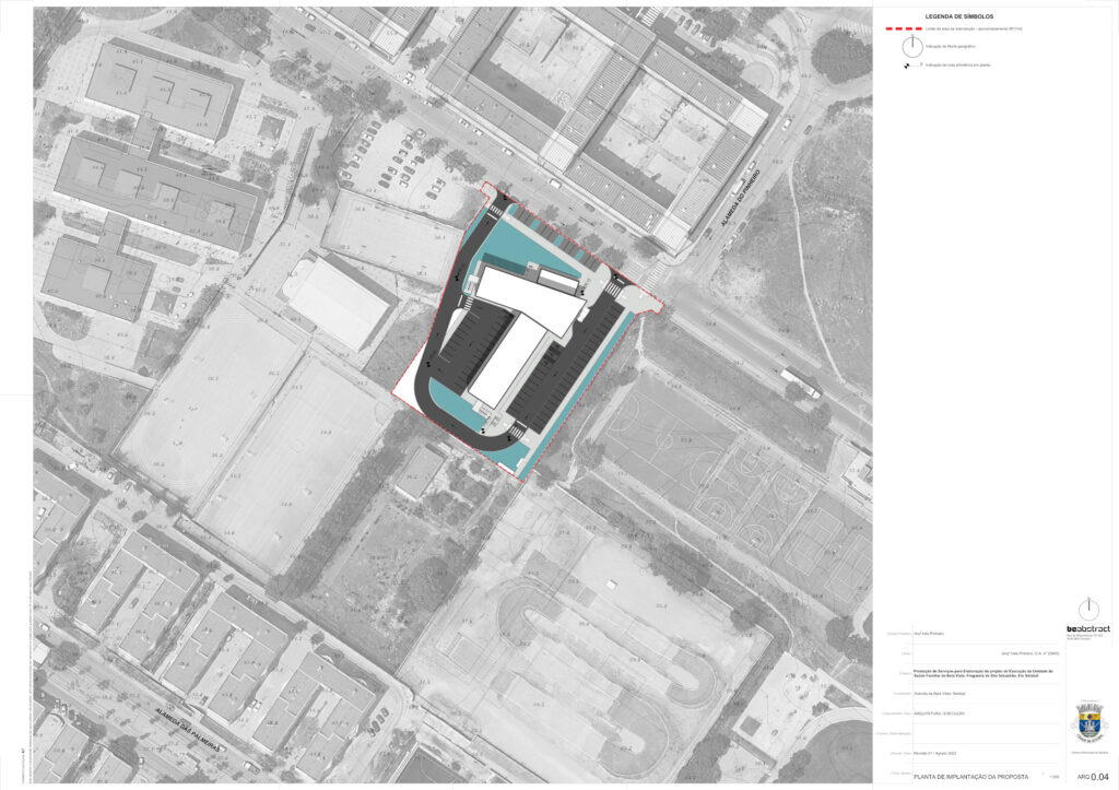 É idealizada uma implantação em forma de “L”, que se abre para a confluência viária e onde são articuladas duas alas funcionais; uma mais vocacionada para o atendimento/tratamento a utentes e outra para serviços e utilização por parte dos funcionários.