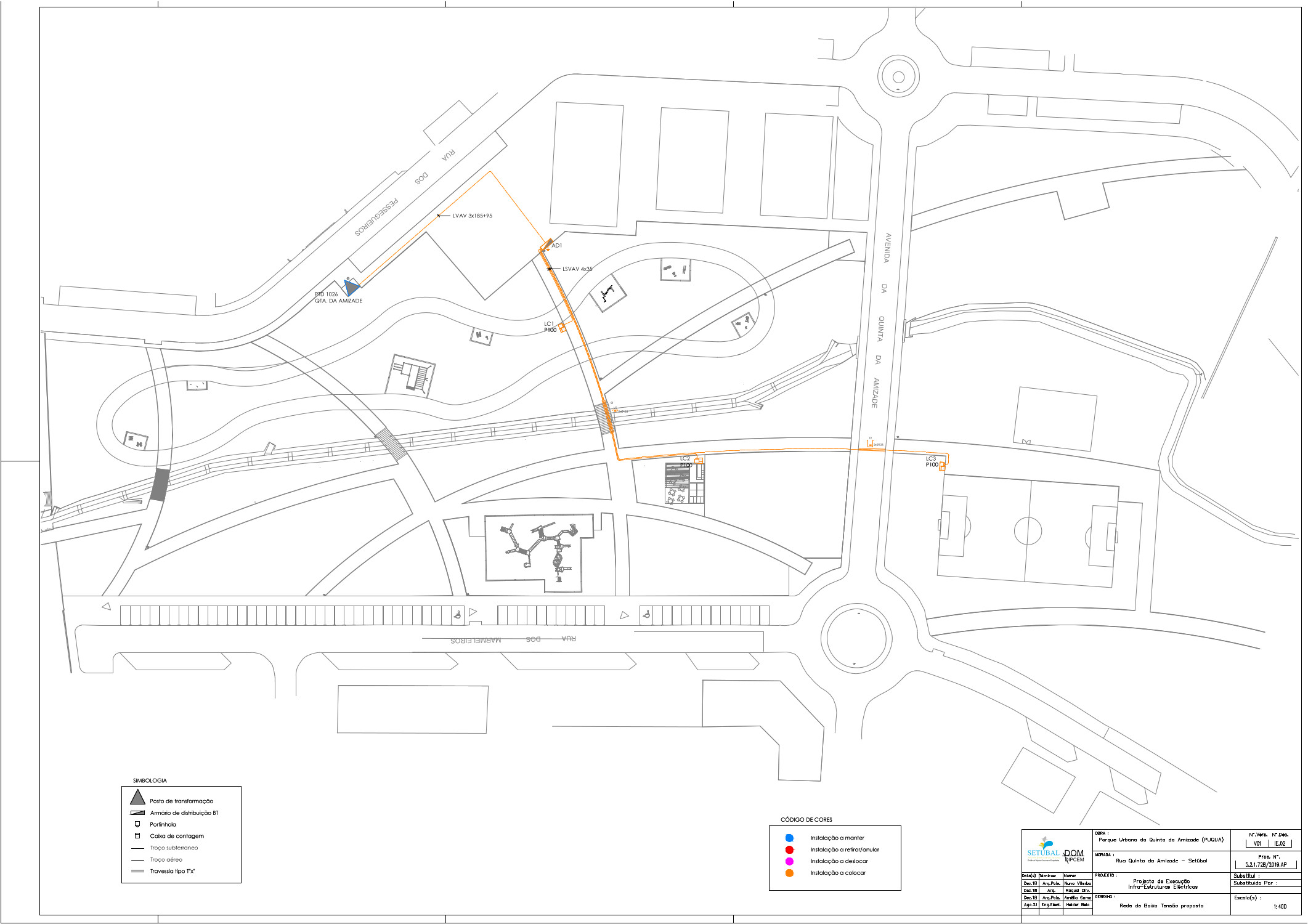 A alimentação aos circuitos da rede proposta foi subterrânea, com origem no Posto de Transformação existente PTD 1026 Quinta da Amizade. Optou-se pela rede de distribuição do tipo subterrâneo a instalar e a distribuir em 400/231V, 50Hz pelo facto de a rede aérea não ser compatível com a natureza e nível das instalações a implantar no parque. Foi instalado armário tipo passeio nas imediações do parque com vista a alimentar o mesmo em baixa tensão.