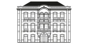 Apresenta elementos ornamentais de cariz neoclássico e fachadas diferentes entre si, ainda que igualmente exuberantes, pela decoração e pelos trabalhos em massa, de inspiração barroca.