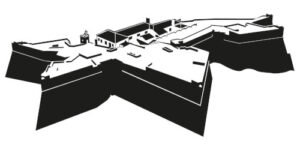 A planta da fortaleza desenha uma estrela de seis pontas, traçado sinuoso a que não é alheio o acidentado do terreno onde lança profundos alicerces.