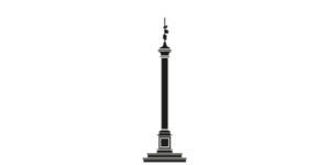 O plinto é de forma clássica, com capitel também coríntio, rematado por uma pirâmide quadrangular.