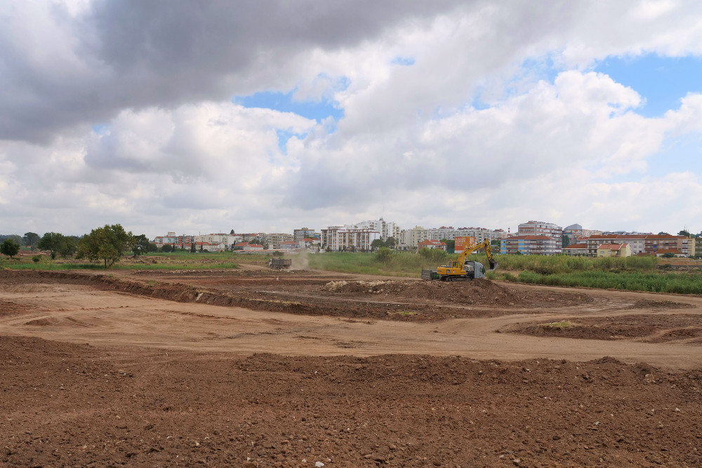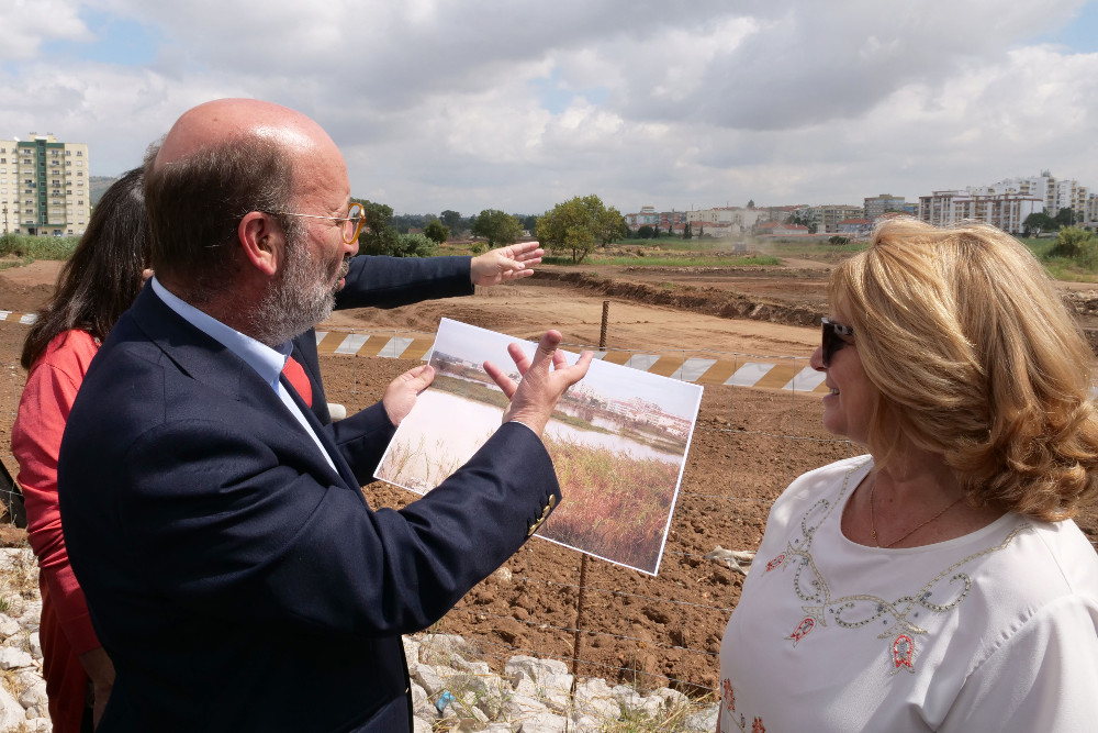 Ministro do Ambiente visita obras na Várzea João Matos Fernandes Parque Urbano da Várzea bacia de retenção de águas