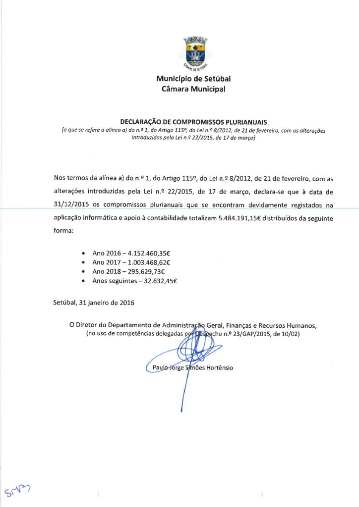 Declaração de Compromissos Plurianuais - 31-12-2015