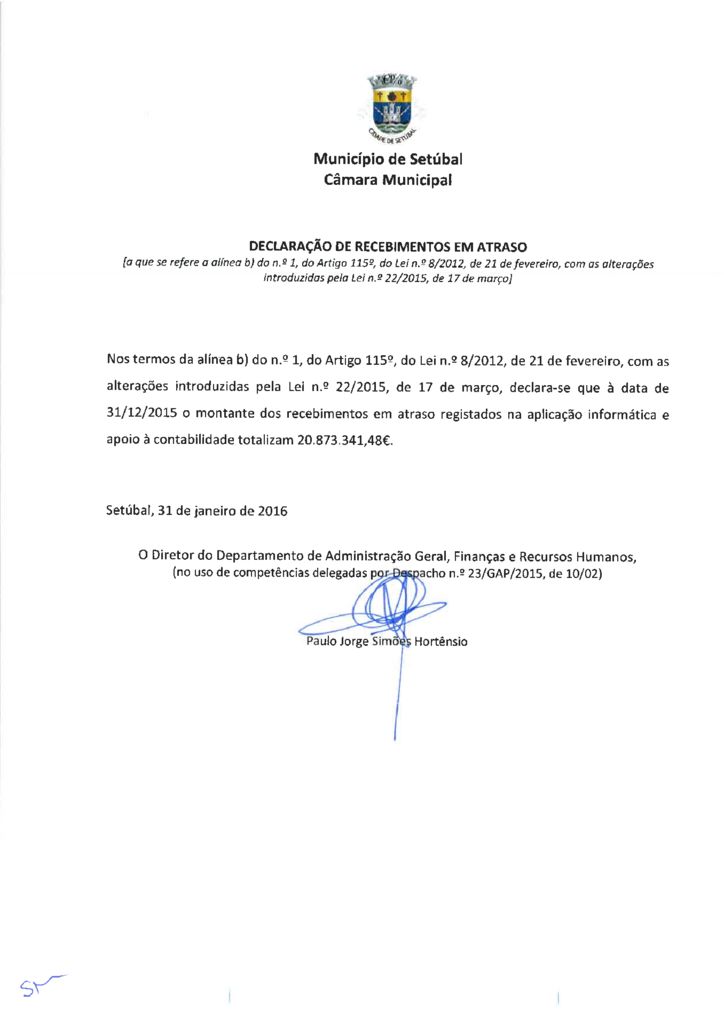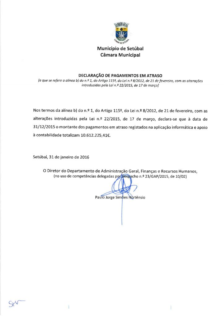 Declaração dos Pagamentos em Atraso - 31-12-2015
