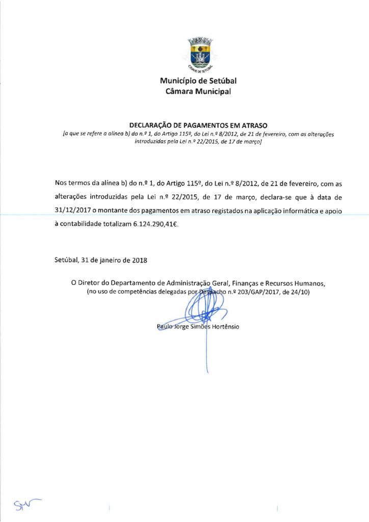 Declaração dos Pagamentos em Atraso - 31-12-2017