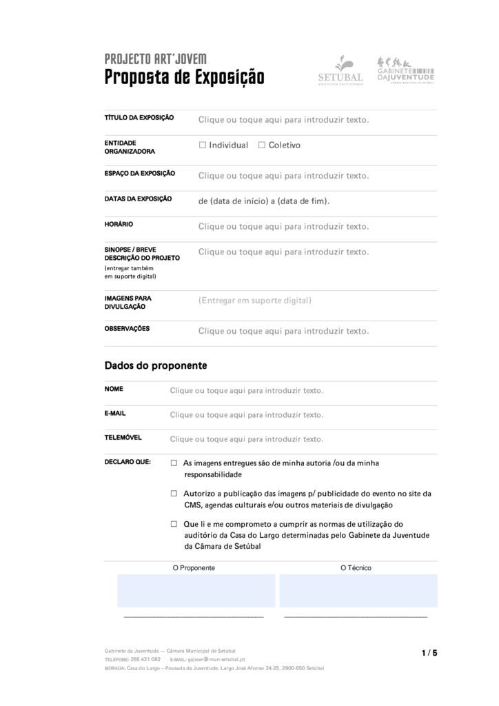 Art´Jovem – Ficha de Inscrição e Regulamento