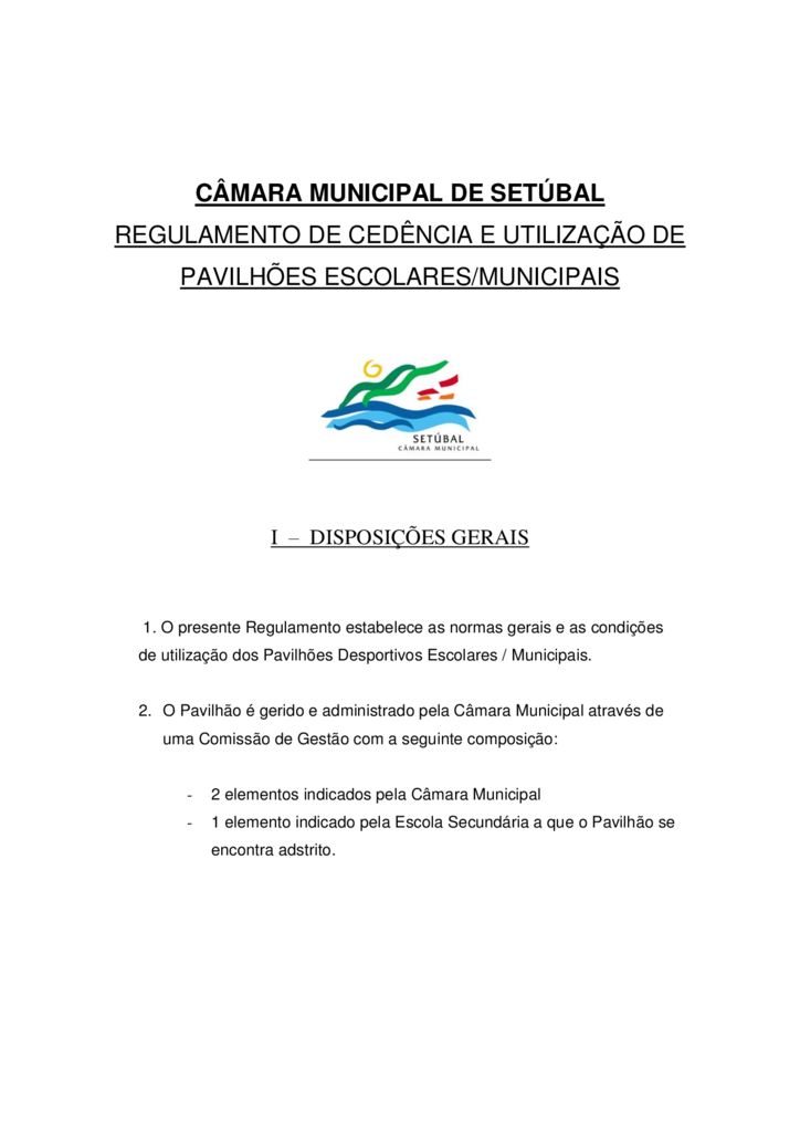 Regulamento - Pavilhões Desportivos Municipais