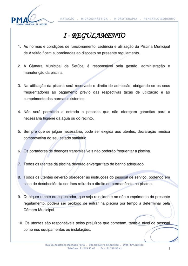 Regulamento - Piscina Municipal de Azeitão