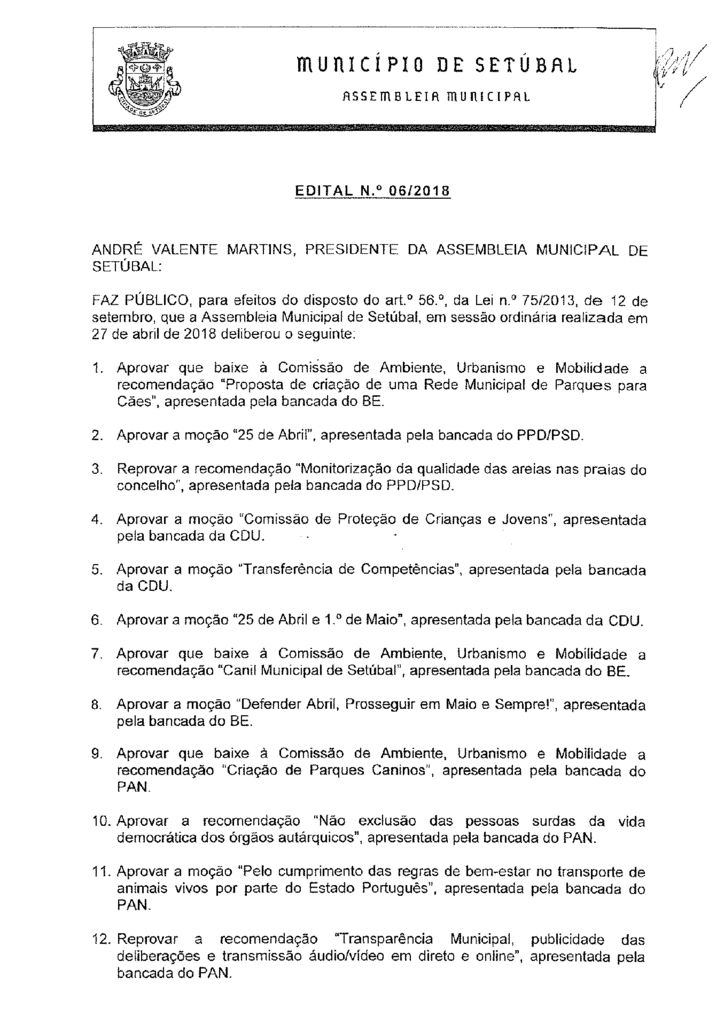 Sessão Ordinária da Assembleia Municipal de Setúbal