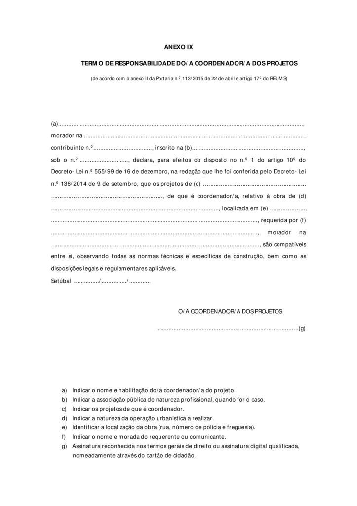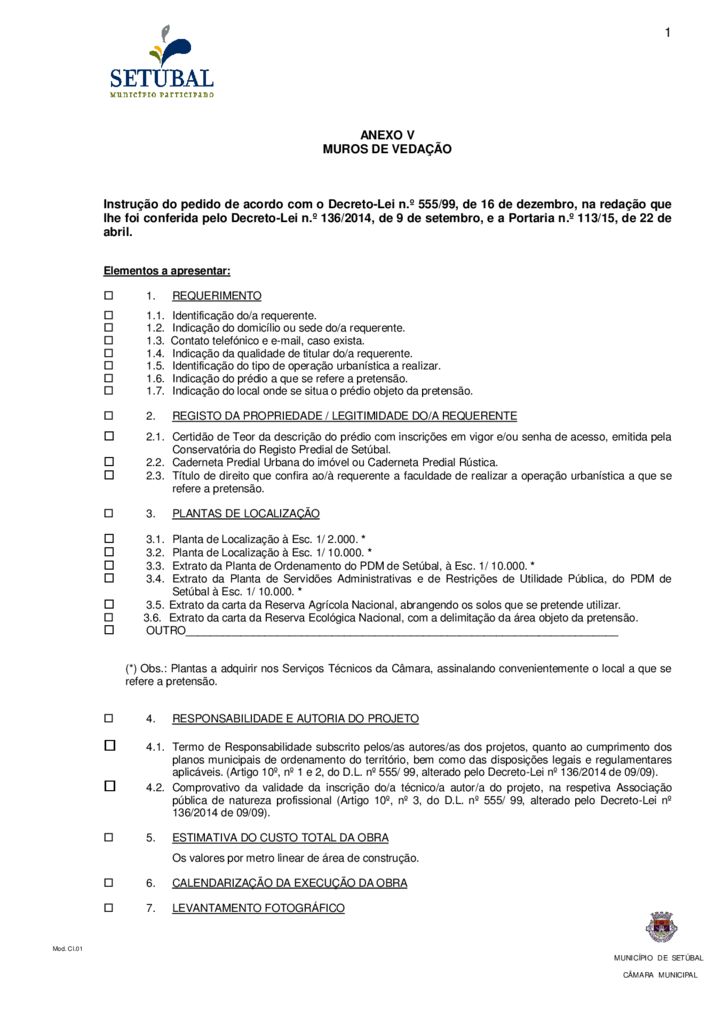 Regulamento de Edificação e Urbanização do Município de Setúbal – Anexo V