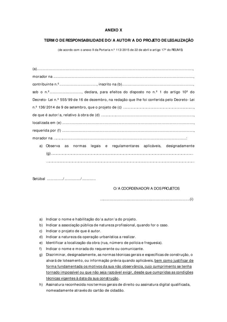 Regulamento de Edificação e Urbanização do Município de Setúbal – Anexo X