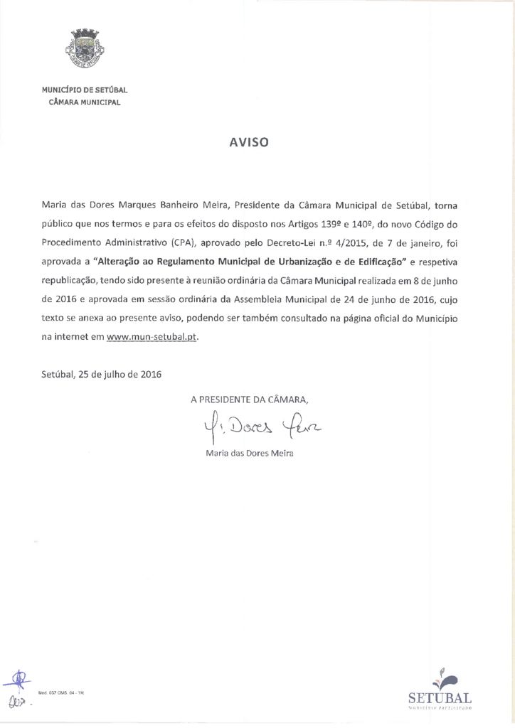 Regulamento de Edificação e Urbanização do Município de Setúbal – Anexo XI