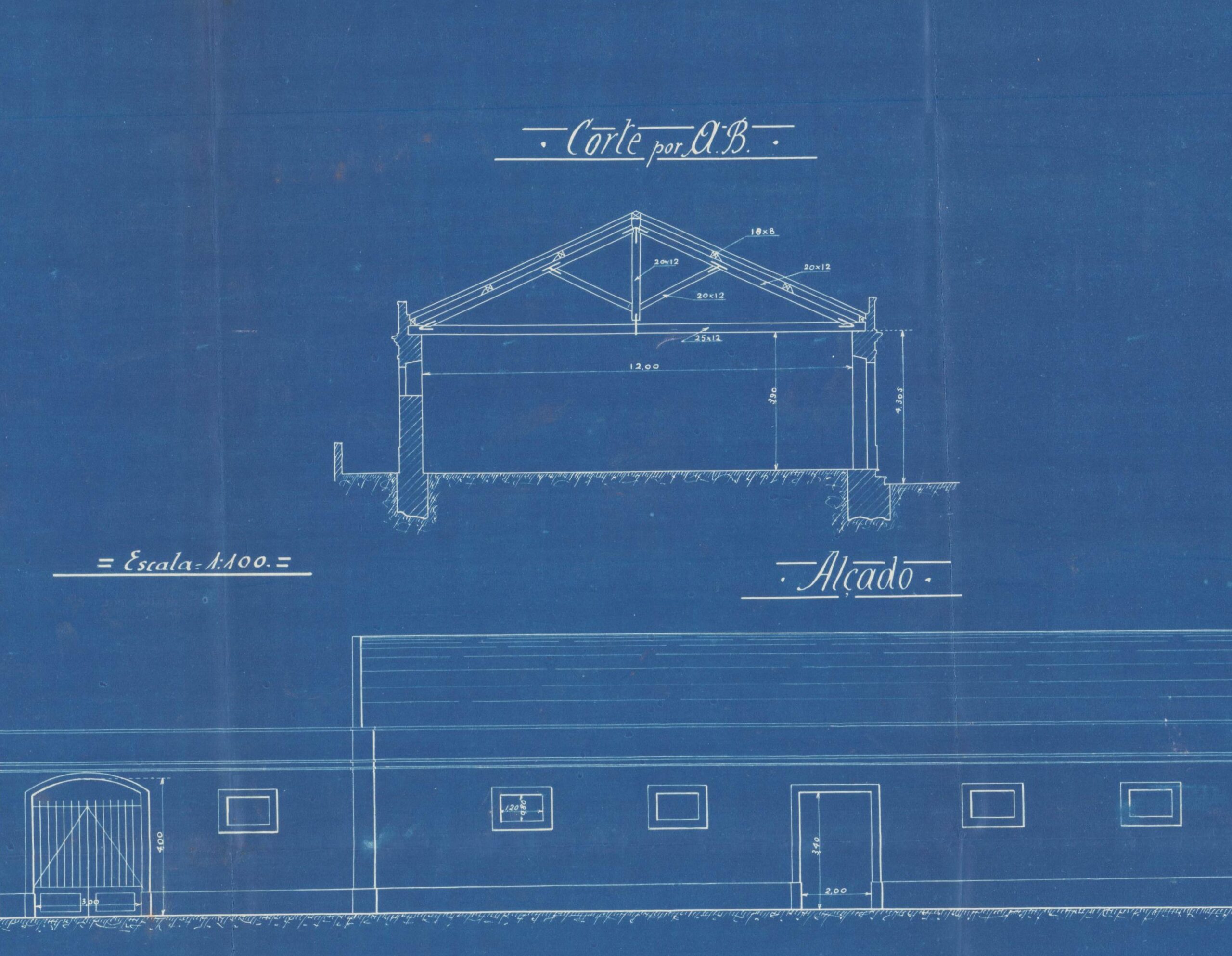 Peça desenhada proveniente do requerimento de ampliação dos armazéns da JMF em Azeitão, com o código de referência PT/AMSTB/CMSTB/L-F/001/0005454/59:1922