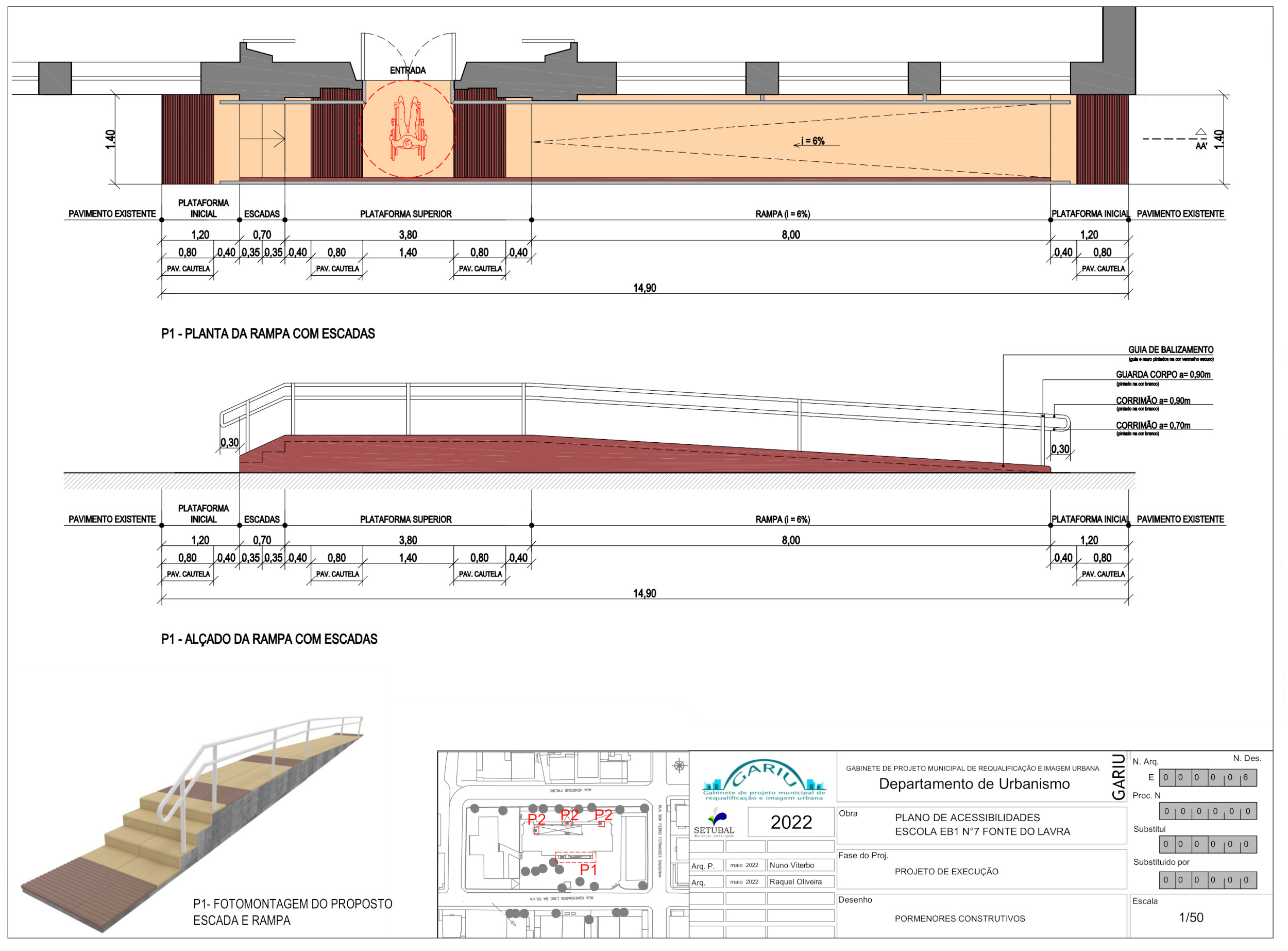 Com estas obras de acessibilidades, os acessos a estes edifícios – Escolas, Edifício Ciprestes e Complexo de Atletismo – ficam assegurados ao nível do piso térreo e da aproximação aos mesmos