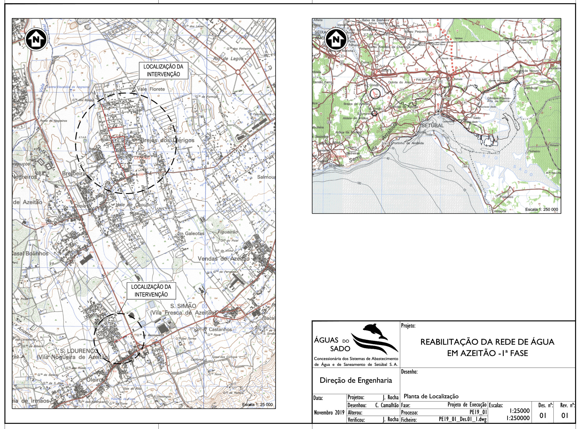 Prevê, ainda, todas as ligações, bem como todos os órgãos de manobra de rede. A solução adotada tem por base legislação nacional em vigor e as normas nacionais e internacionais correntemente aceites, designadamente o Regulamento Geral dos Sistemas Públicos e Prediais de Distribuição de Água e de Drenagem de Águas Residuais (DR 23/95) e as Especificações Técnicas do Laboratório Nacional de Engenharia Civil, bem como outras normas e critérios em bibliografia afim.