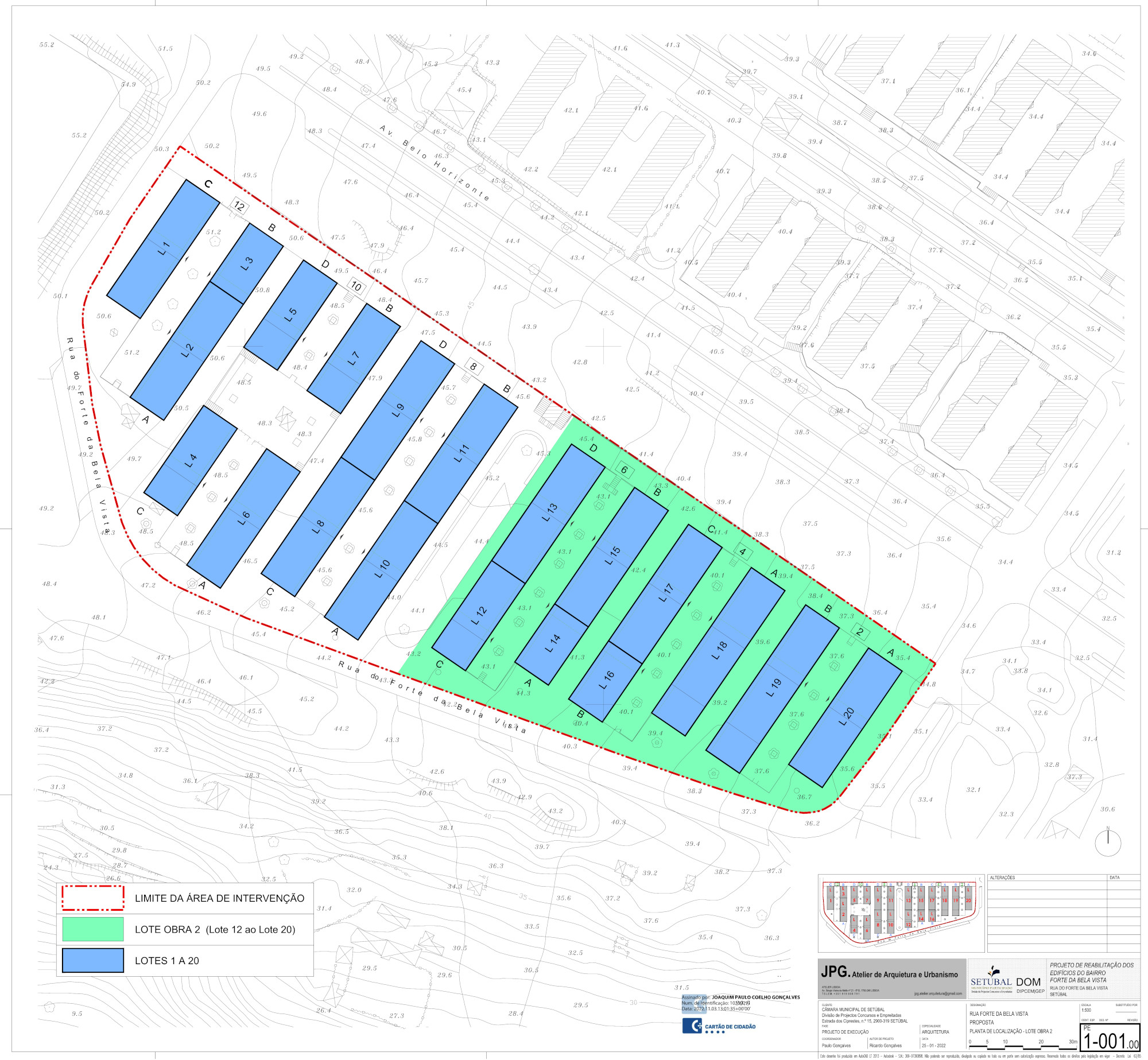 • O Lote 2 incide sobre cinquenta e três (53) fogos e partes comuns dos edifícios dos Lotes L12, L13, L14, L15, L16, L17, L18, L19 e L20, de habitação multifamiliar.