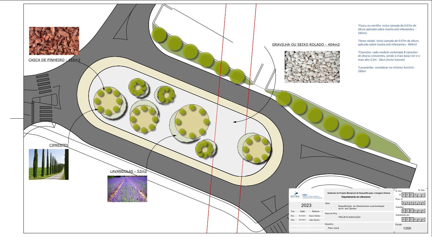 A obra na Estrada dos Ciprestes insere-se num conjunto de intervenções que a Câmara Municipal de Setúbal tem vindo a desenvolver com o objetivo de melhorar e simplificar a circulação viária e criar circuitos pedonais e cicláveis mais amplos e seguros. A presente intervenção integra um estudo urbanístico previsto para a zona, sendo esta uma das peças finais para a conclusão dos trabalhos necessários à sua implementação. O estudo desta intervenção foi desenvolvido tendo em consideração as condicionantes impostas pela obra da Ciclopset (ligação ciclável entre Setúbal e Palmela), bem como a execução recente da rotunda da Azinhaga de São Joaquim.