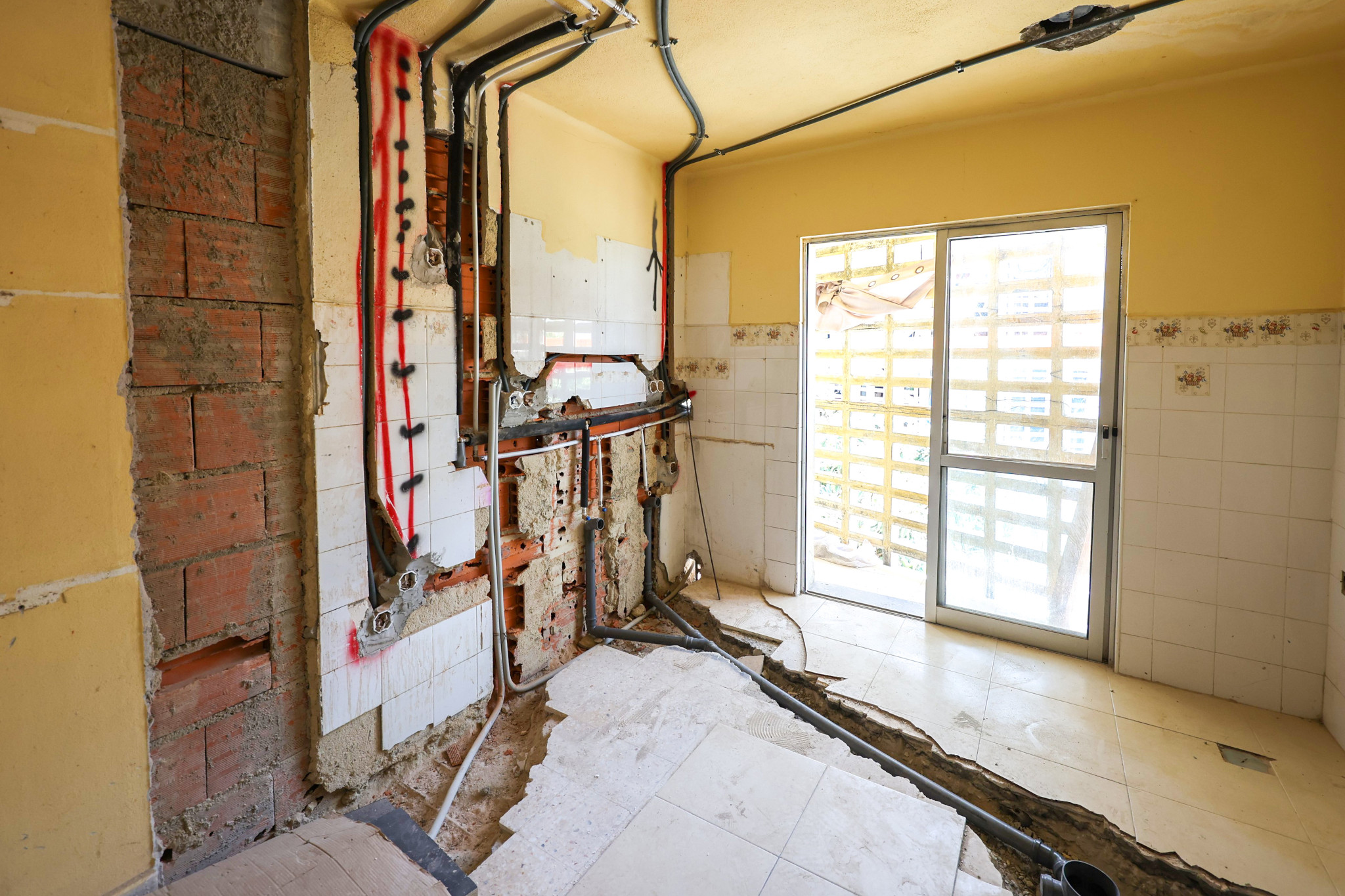 Nas cozinhas e instalações sanitárias das habitações, está prevista uma intervenção integral, incluindo a renovação da rede abastecimento de água, rede de drenagem de esgotos, rede de abastecimento de gás e rede elétrica.