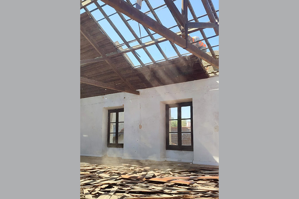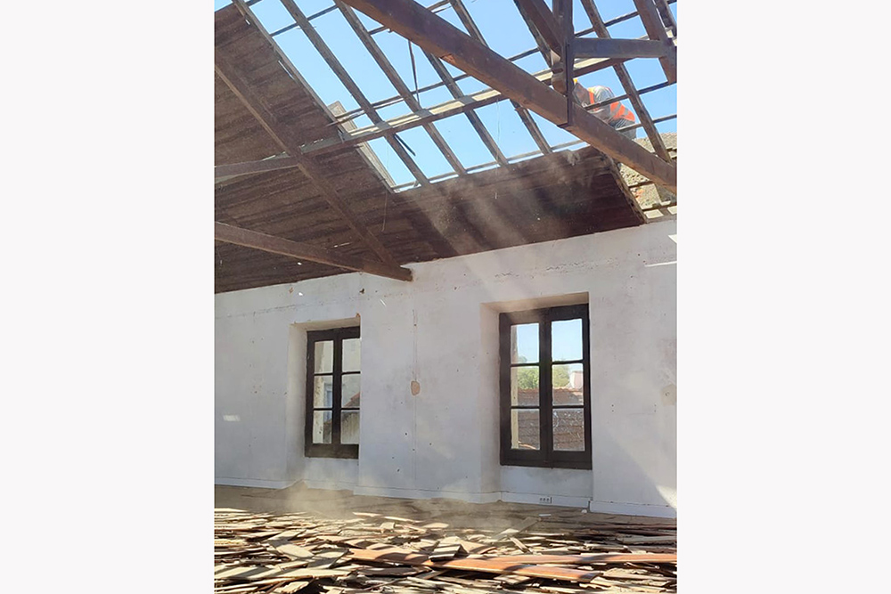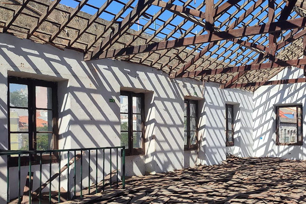 A cobertura encontrando-se bastante degradada, deverá ser completamente substituída, e a estrutura de madeira replicada. Será também necessário criar condições acústicas, e o seu pavimento alterado.