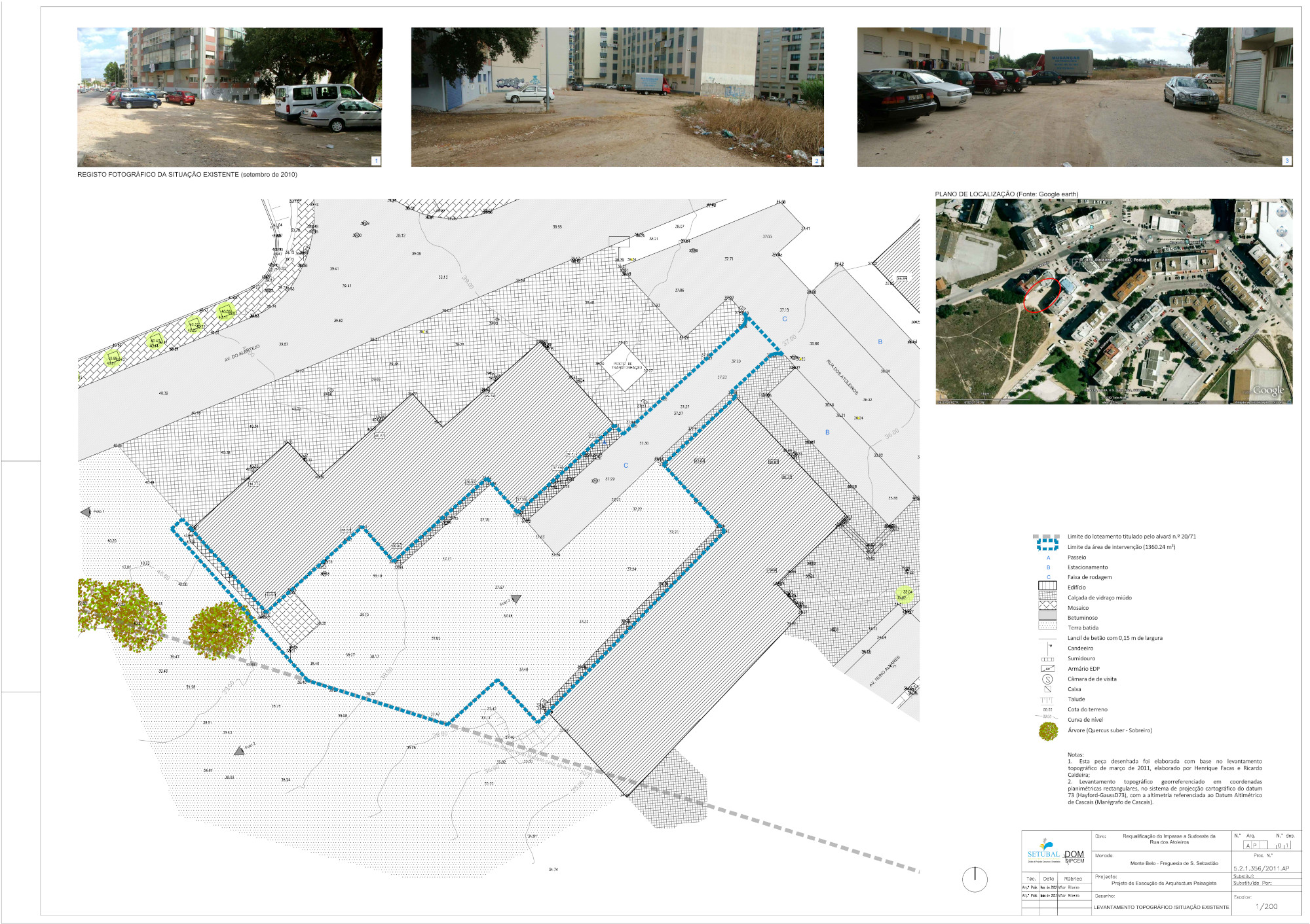 A intervenção decorreu nas traseiras dos edifícios entre a Estrada do Alentejo, a norte, traseiras dos edifícios da Av. Nuno Álvares, a sul, a Rua dos Atoleiros, a nascente, e o loteamento titulado pelo alvará n.º 20/71, a poente, no Bairro de Monte Belo Sul, na Freguesia de S. Sebastião.