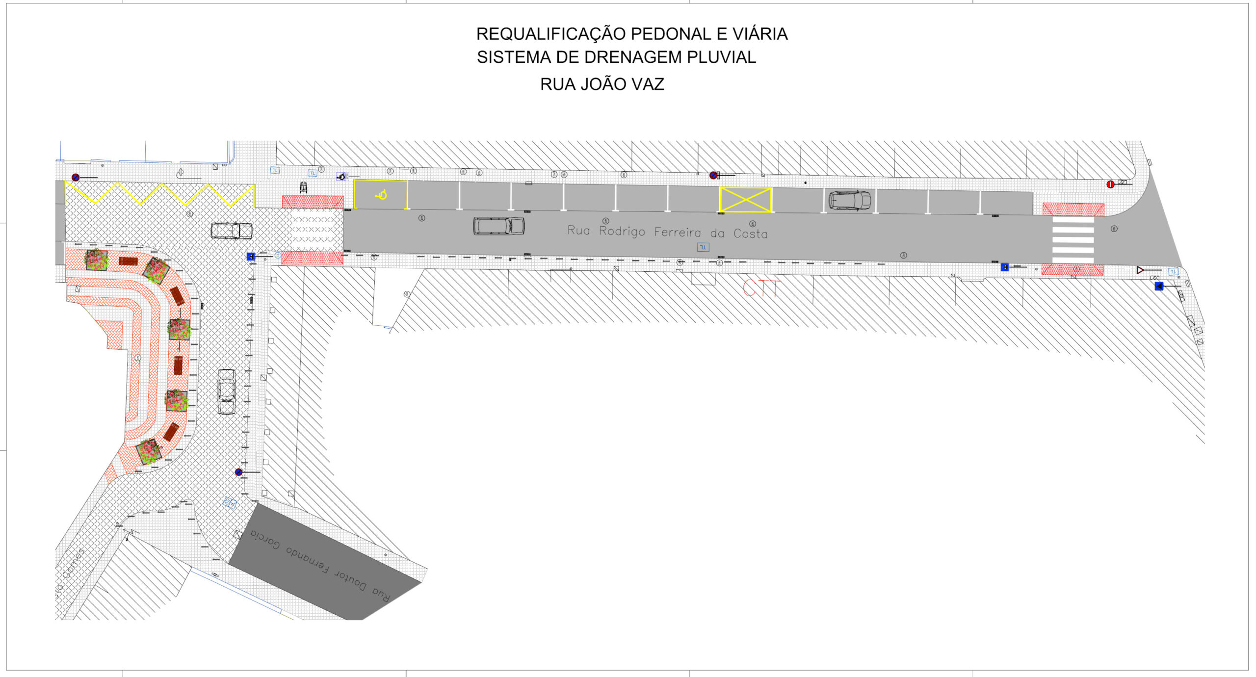 | Substituição do sistema de drenagem pluvial existente (drenagem superficial), colocando sumidouros e ligações às caixas de visita existentes