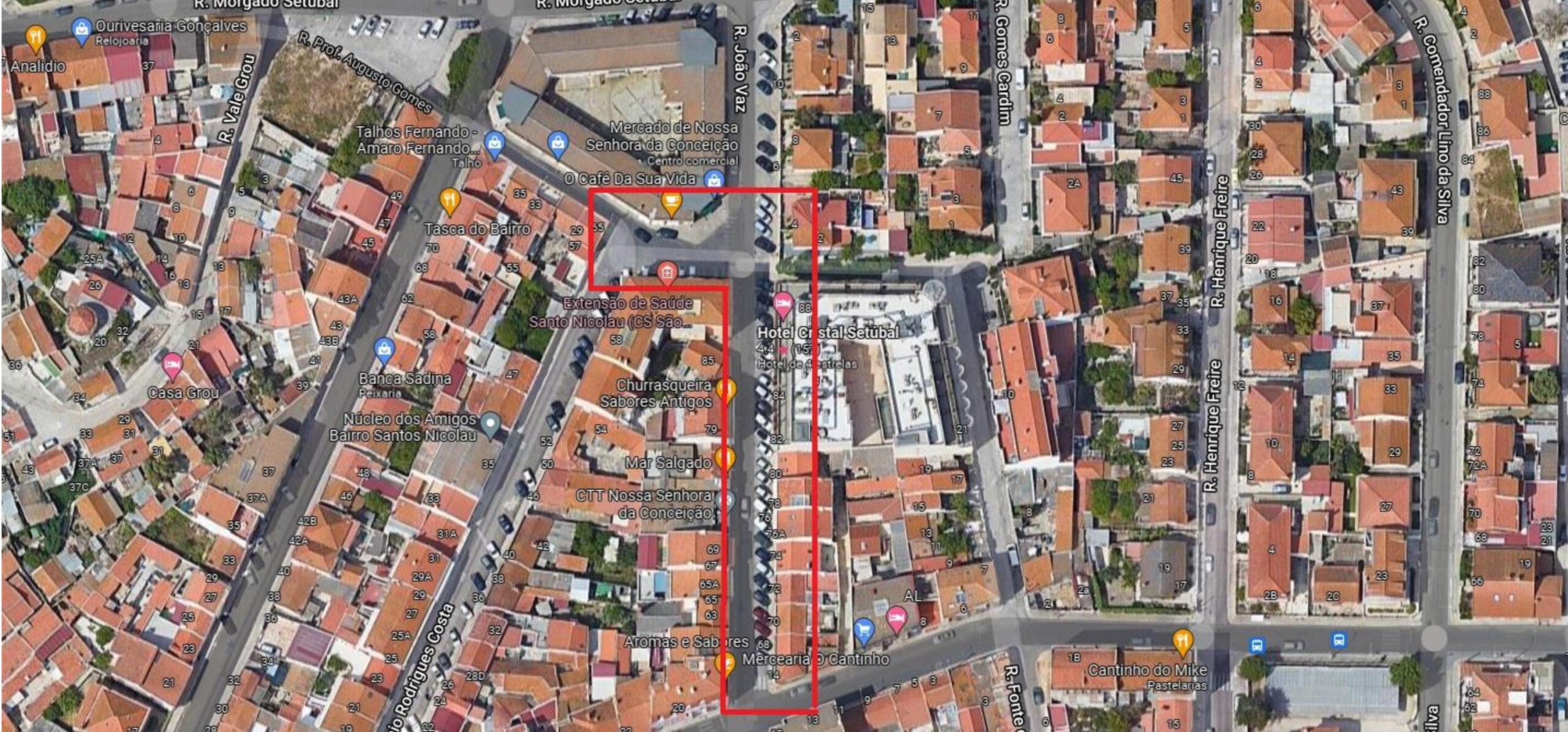 A presente intervenção refere-se à requalificação do Largo do Mercado e de parte da Rua Rodrigo Ferreira da Costa, na Freguesia de São Sebastião.