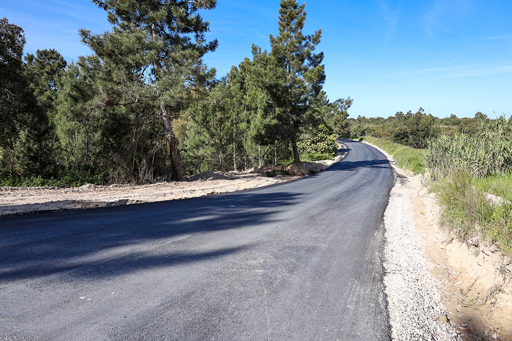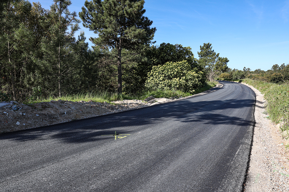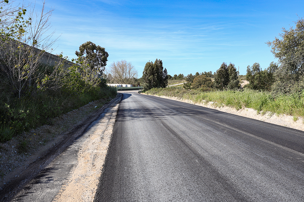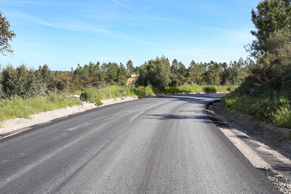 Camada de base em tout-venant 1.ª, procedente de britagem de calcários, com 0,10m de espessura, devidamente regada e compactada. Camada de desgaste AC 14 Surf 35/50 (BB Granito) com 0,05m de espessura após recalque, incluindo rega de colagem com ECR – 1 à taxa de 0,5Kg/m2.